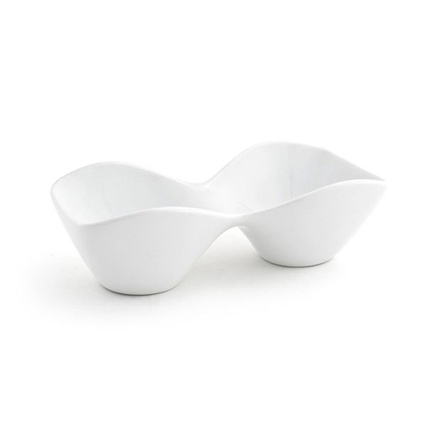 A unique design by Front of the house in the form of a smooth bootie bowl 8x48x21 cm. Made from the highest quality, proprietary hospitality-grade porcelain, strengthened with a high percentage of aluminum oxide, titanium and double fired in excess of 2500 °F. All corners and rims are reinforced to make them chip resistant. Strength, durability and style. Excellent as a serving dish for something cold or hot. Conveniently designed to be carried around with openings on both sides to be comforable for your hands.